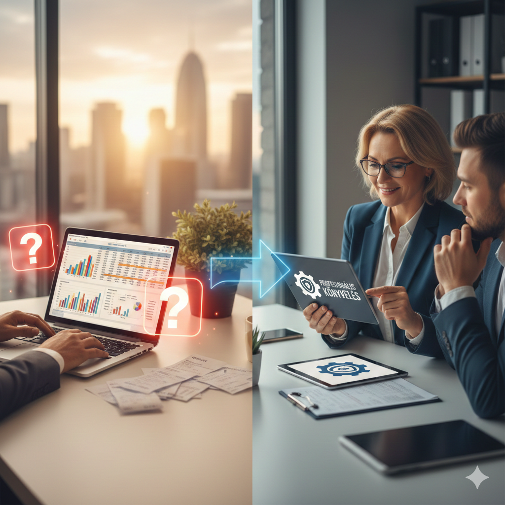 A könyvelői díj általában egy kisebb tétel a vállalkozás költségvetésében, viszont cserébe nyugalmat és biztonságot vásárol. Egyetlen elfelejtett bevallás vagy rosszul értelmezett jogszabály többe kerülhet, mint a könyvelő éves díja.